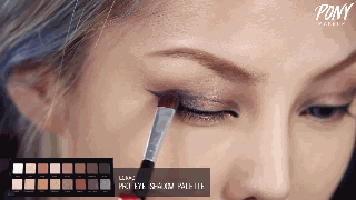 Step3:使用浅棕色眼影在上眼皮大面积的涂抹进行打底,然后使用珠光色在眼皮中央处进行提亮。