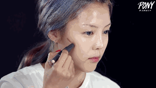 Step1:使用双色修容棒在颧骨侧面、发际线等地方画好阴影。在眼下、唇部上方、眉骨上方进行提亮。