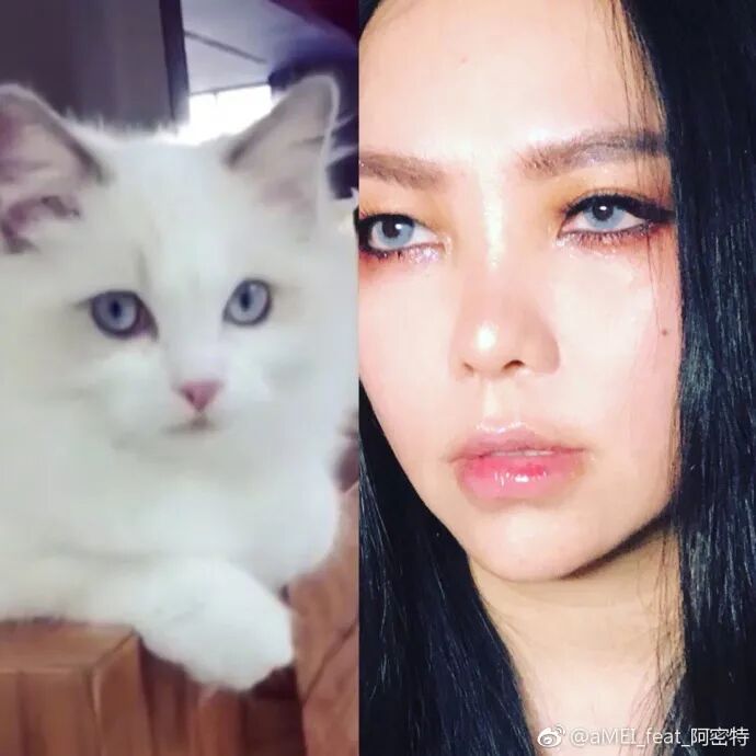 这不,就连阿妹张惠妹都晒出自己和猫咪的脸部对比图,并自侃道:“是同个化妆师吗?”
