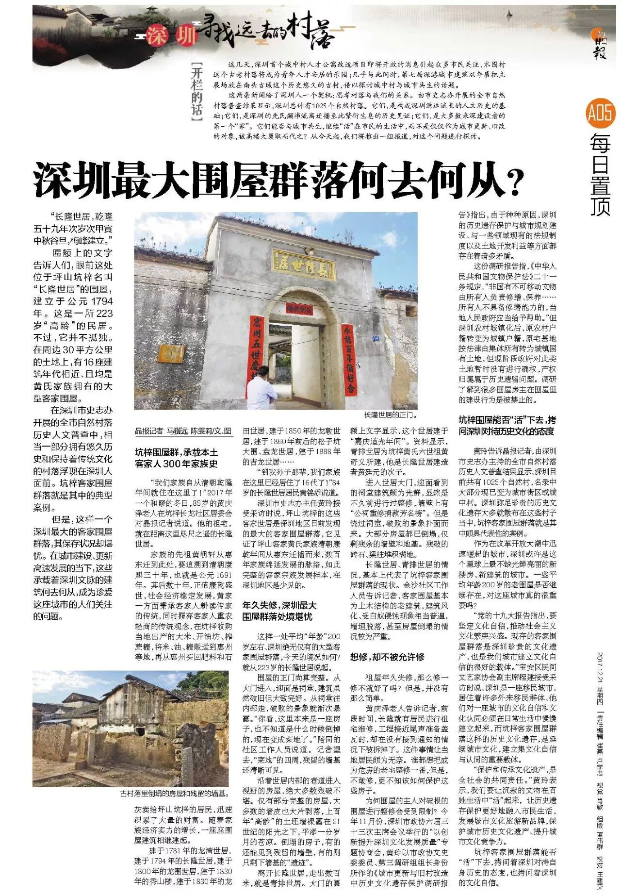 在深圳市史志办开展的全市自然村落历史人文普查中,相当一部分拥有悠久历史和保持着传统文化的村落浮现在深圳人面前。坑梓客家围屋群落就是其中的典型案例。
