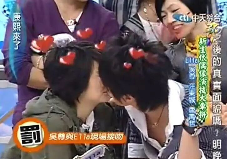 本来按照节目里约定的游戏规则,两人需要亲吻,吴尊就真的吻上去了。