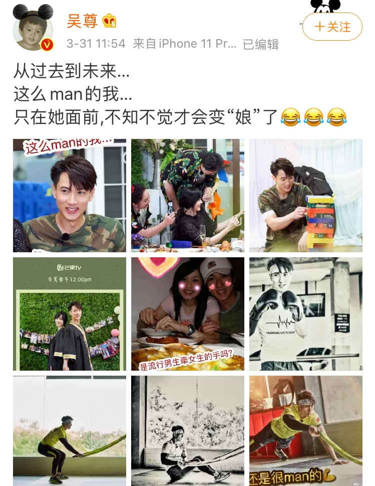 之后吴尊就走上了360度全方位po自家隐私的节奏。