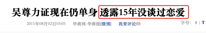 最搞笑的是,到了2011年,吴尊还坚持说自己单身,并透漏自己15年没谈过恋爱。