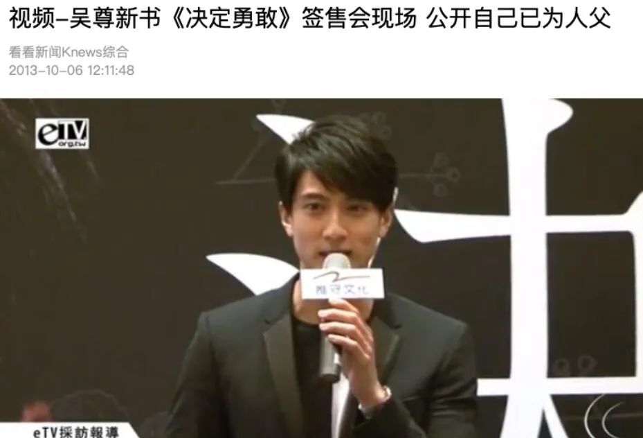 于是,2013年,吴尊为了给自己新书制造噱头,自己在签售会现场公开,已婚已育。