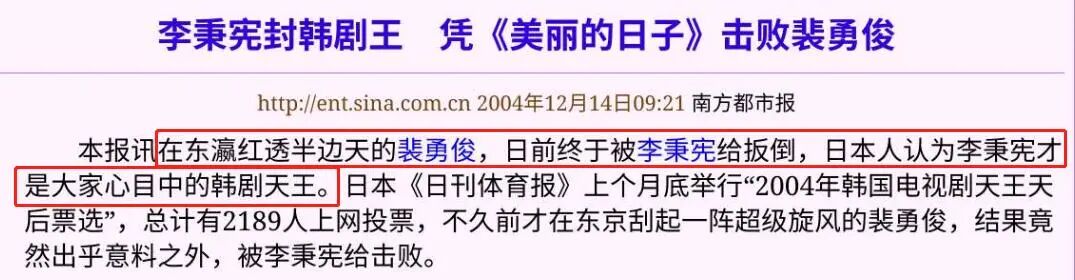 2004年,在某媒体发起的投票中,李秉宪凭借《美丽的日子》成功扳倒当时红透半边天的裴勇俊,成为韩剧天王。而当届评选出的韩剧女王,自然是崔智友。