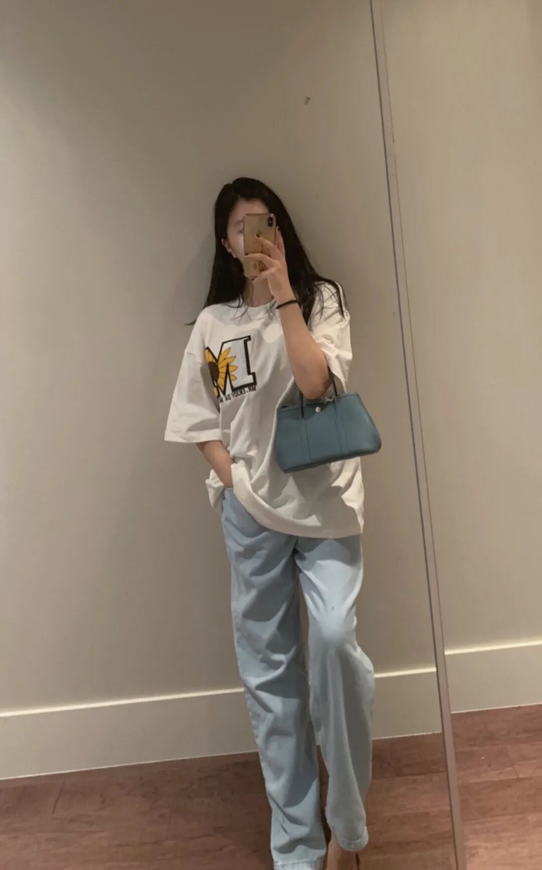 生活中的杨海润其实一点“星二代”的架子都没有,而且她从来不走过于前卫潮流的路线,私服造型反而看上去像个普通的邻家少女一样。杨海润身着一件蓝色印花T恤,这种大大的卡通图案看上去童趣风满满,让杨海润身上的活力气息变得更足了,高马尾的发型也比较适合这种少女人设,看上去青春靓丽又极具跃动活力感,搭配一条色泽更加浅淡的阔腿牛仔裤,休闲又时髦。