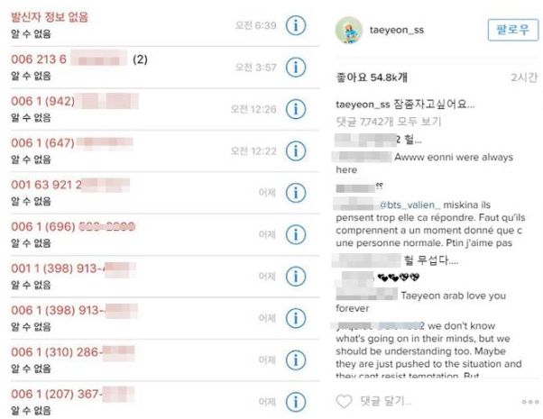 少女时代的泰妍就曾前后两次上传她的通话记录截图,满满的都是未知来源的电话号码!想拉黑都拉不过来吧...
