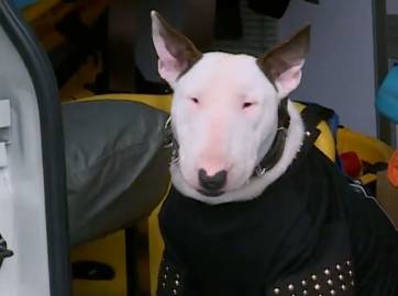还给狗穿上了军大衣和墨镜