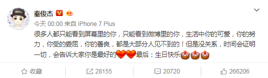 秦俊杰情真意切地发了一段话,深情地说小猴紫是最好的,狗粮撒了一地。