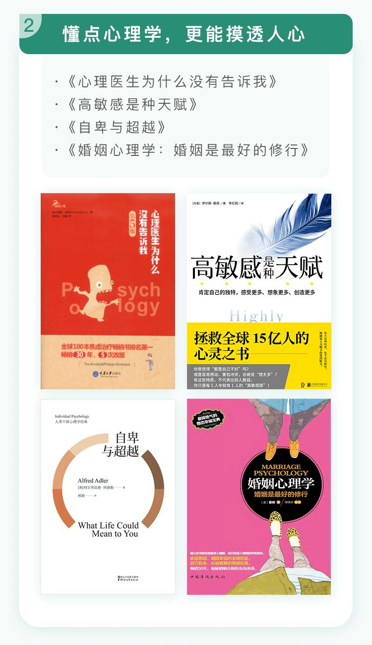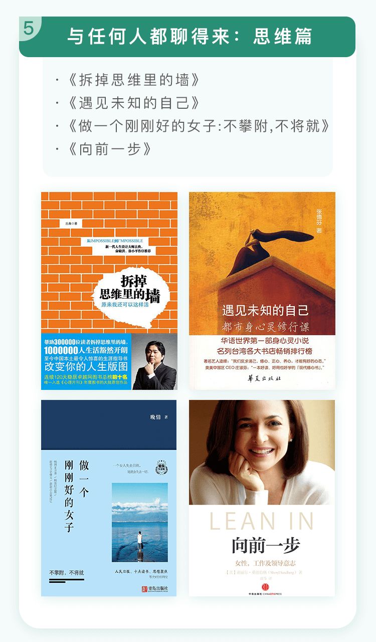 自己不知道看什么书,也没时间看书,更看不懂、看不进去。但这些并不能成 为你提升自己的障碍。