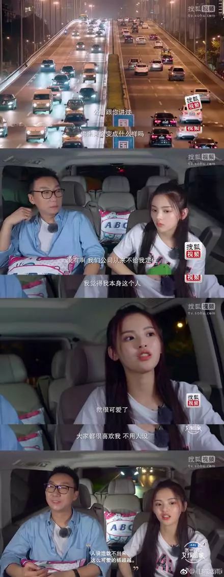 她最近参加了一个叫《送100位女孩回家》的网综,光线的老总丁丁张做主持人,在亲自接送杨超越参加通告的路上对她进行采访。