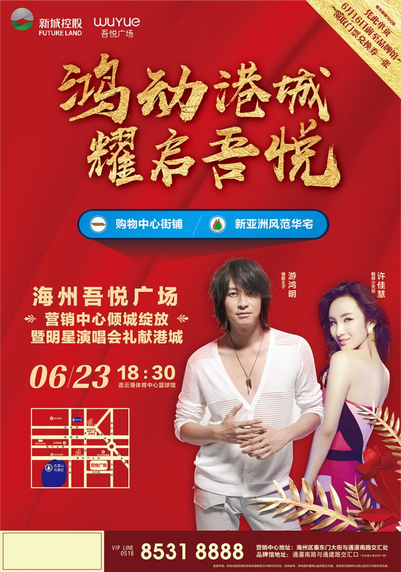 6月23日,情歌王子游鸿明将亲临港城,与海州吾悦广场一起,在港城掀起一场音乐盛会,为初夏的港城带来更多震撼!不仅如此,海州吾悦广场还邀请了“魅惑小天后”许佳慧,与游鸿明一起,用歌声礼献港城,致敬港城新贵!