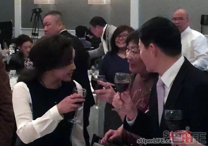 (刘晓庆与中盛集团万雅丽和中国驻多伦多总领馆薛冰总领事共同举杯)