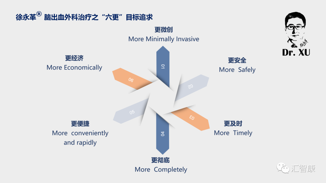 包括一条基本路线、两项基本原则、六更目标追求、十大外科理念和两大血肿术式,是徐教授对30年临床工作深入思考后的系统总结;