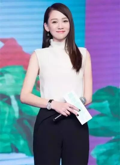 白色无袖上衣,高领的设计很潮很时尚,搭配黑色裤装,干练十足。