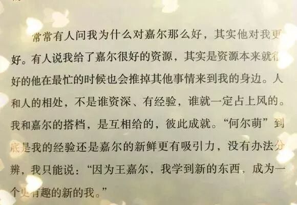 总有人问,“何老师你为什么对王嘉尔那么好?”后来何老师在《拜托了冰箱》的书中说道“你们只看到了我对他好,其实他对我更好”。