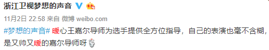 就连节目组官博都忍不住,连发好几条微博夸“真是又帅又暖的导师了!”呵呵,大娱的少女心化了~