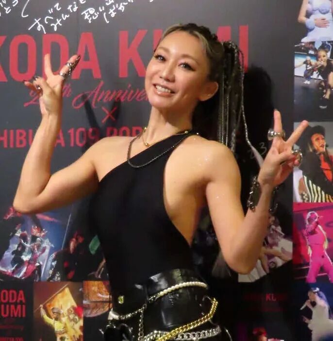 歌手幸田来未(42岁)9月26日现身东京涩谷109大厦,出席“SHIBUYA109×KODA KUMI 25th Anniversary Campaign”纪念发布会。