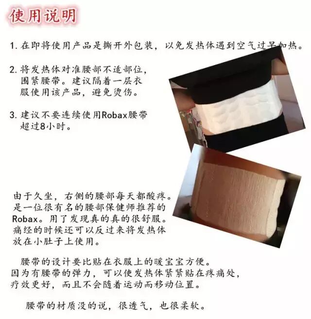 · 请勿将腰贴放于微波或企图加热,如产品受热过度会引起着火;