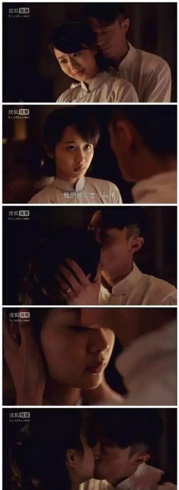 抗战片《战长沙》里,主演霍建华和杨紫有过这么一段唯美甜腻的吻戏----