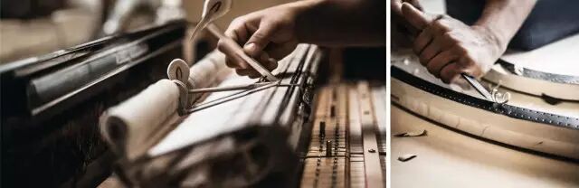 施坦威钢琴的制作是先从最具标志性的琴壳开始。施坦威在1878年发明的琴壳一次弯曲成型技术一直沿用至今。在琴壳弯曲成形的同时,其他木质部件也在雕刻之中。这些工件能够承受琴弦产生的高达20吨的张力。