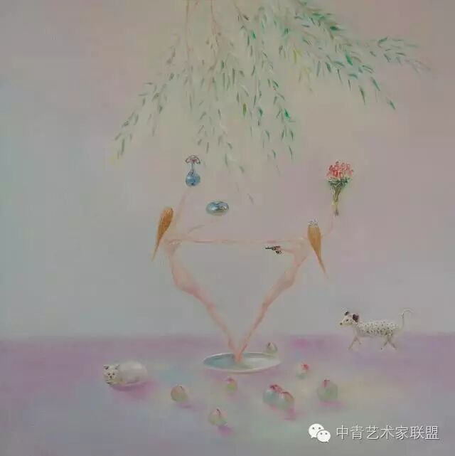 象爱一样,每个人都不知自己来自哪里。多数人懵懂的活着,有着常态的生活。但如果可以把自己放在画面中,找寻不寻常的感受,体验角色的快慰与失意,追寻梦境里残存的心跳感觉,是一种另类的人生。《春》《秋》《双鱼》等作品里透射着瑰丽浪漫的调子,那仿佛是一种无法启及的境界,心向往之神为之思。人需要伴侣吗?那个伴侣一定应是自己最认可的,因此人最好的伴侣是自己。但人为什么要得到一个不是自己的伴侣。因为人需要把这一精神变为实质即物化它。这当然是非常困难和矛盾的,找不到答案便创造了一个个奇特的画面。追寻的那个人有着非物质的美丽和超越时空的纯洁。
