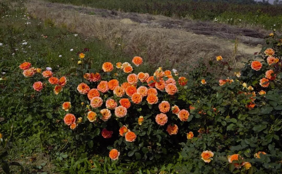 “铜管乐队,种植一年三个月,特点:丰花、勤花、不垂头、抗病、耐晒,经历了42度高温暴晒几乎没有晒伤。”
