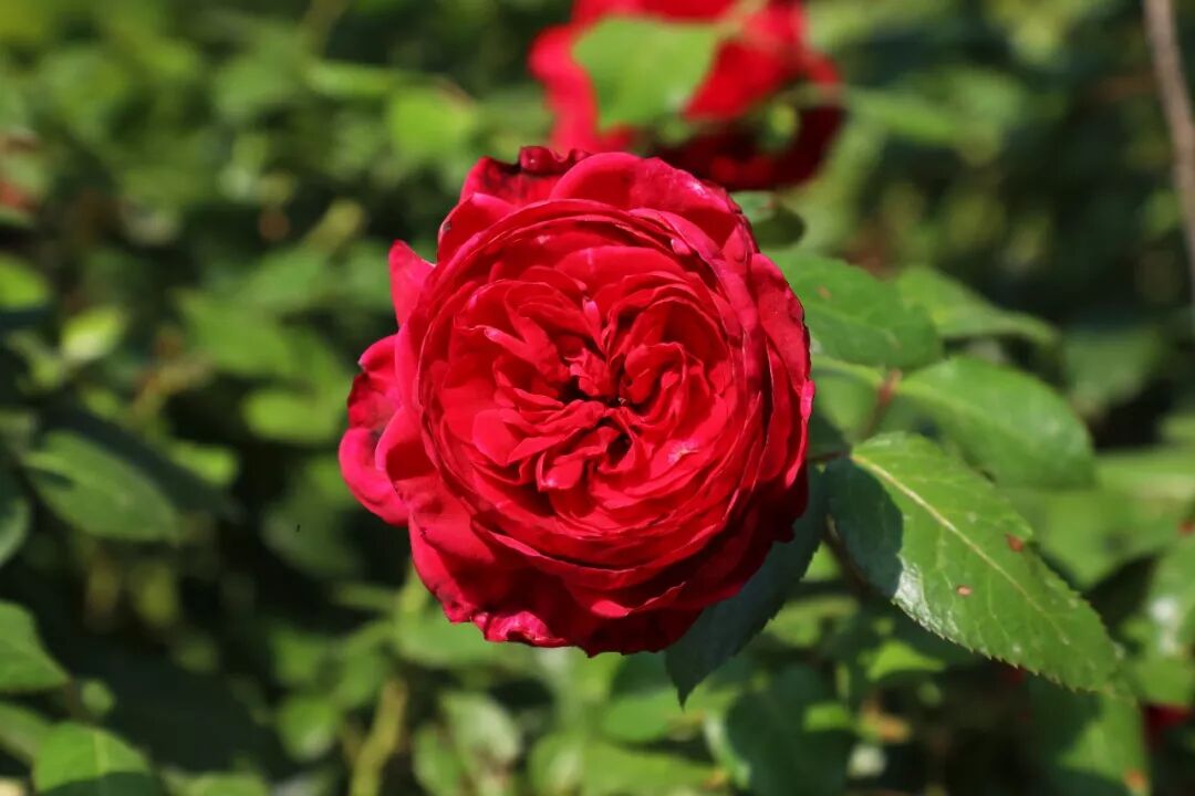 艳丽的深红色可以连续盛开一周以上,老玫瑰与柠檬香气混合,散发出非常奇妙又浓郁的香味,阳光下叶片依然油亮有光泽。