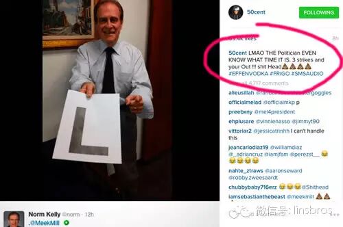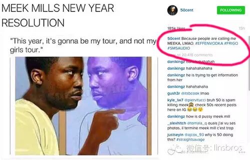 50 Cent是beef大户,而且他每次撕beef最终必须要赢。昨天Meek Mill先挑衅他,Fif先是放出了一波攻击后,现在Fif再放出5发子弹。