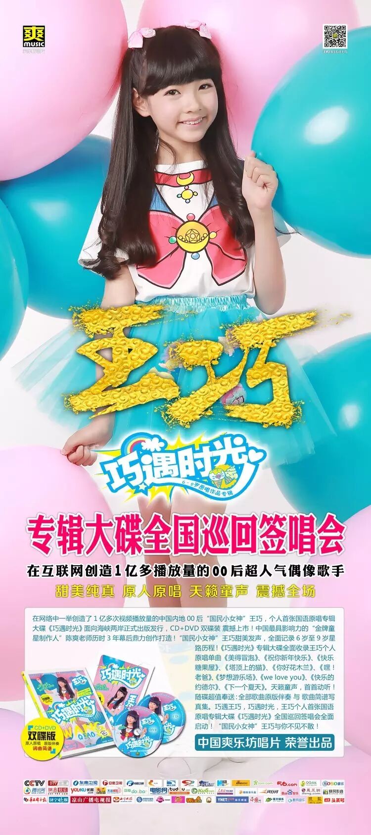 据悉,《巧遇时光》是中国最具影响力的“金牌童星制作人”陈爽为这位网络演唱视频点击破两亿而爆红网络的旗下童星弟子王巧量身打造的国语专辑唱片。整张专辑收录了小萝莉王巧从6岁出道到9岁这三年里所演唱的全部经典原唱作品。该专辑一经发布,便获赞无数,更是一举提名“华语金曲奖”的年度最佳儿童专辑。