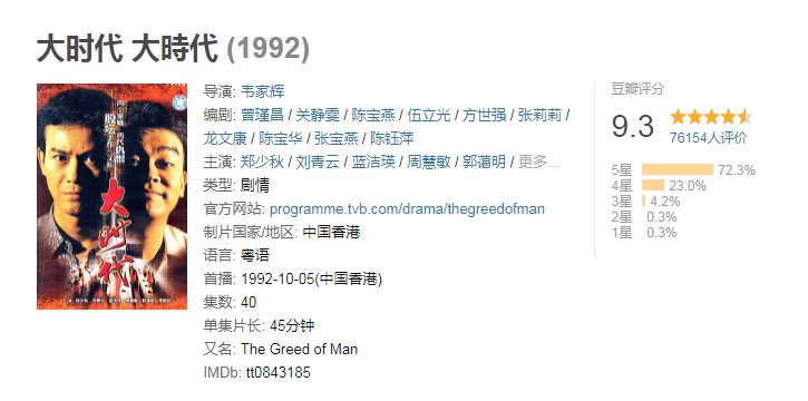《大时代》无论从编剧,演员,到主题曲插曲,方方面面几乎倾尽了TVB所有的资源。
