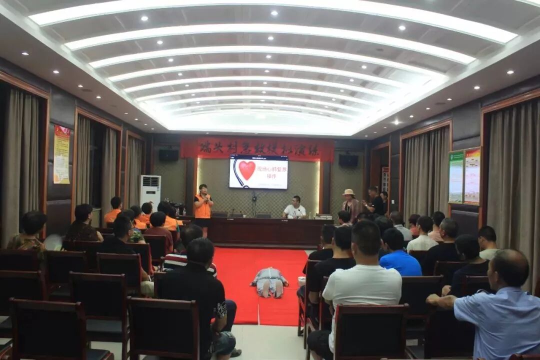 培训于晚上7点开始。首先,医务科科长何静介绍了常见意外伤害事件的种类、应急处置方法等,并针对冠心病发病率逐年上升、暑期中暑、溺水频发,强调了第一时间急救的重要性。然后,何科长阐述了正确拨打120或119的方法与注意事项。最后,医护人员邓郴、成丹丹、朱俊华等进示范了实践操作。