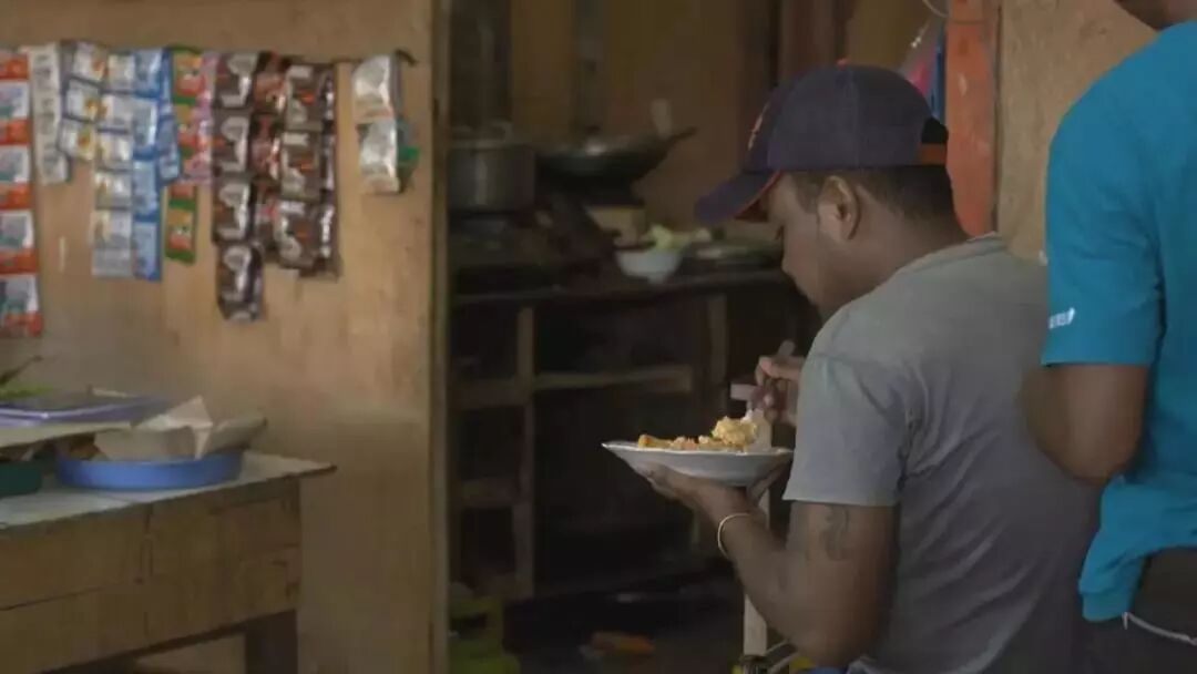 有趣的是在这家吃饭不需要花钱的,而是用塑料废品来换取食物,一公斤的塑料垃圾就可以抵5美分,吃上一顿饱餐。