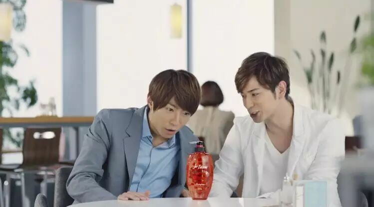 里面有一歌场景是:觉得给别人的印象,声音和头发一样重要的两人,换声后恢复到自己的声音叫出了决定性的台词“Jel'aime re~l~ax!”。这个场景是其实是MJ的点子,MJ表示“这个CM中叫出“Jel'aime ”的场景给不少人留下了深刻地印象,所以要是能够2人一起说出来就好了能够完成这件事简直太棒啦“