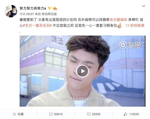 最近,张艺兴在其本人微博发布了一支有趣的视频,于是一个叫做#艺兴一意买买买#的话题瞬间红遍微博。