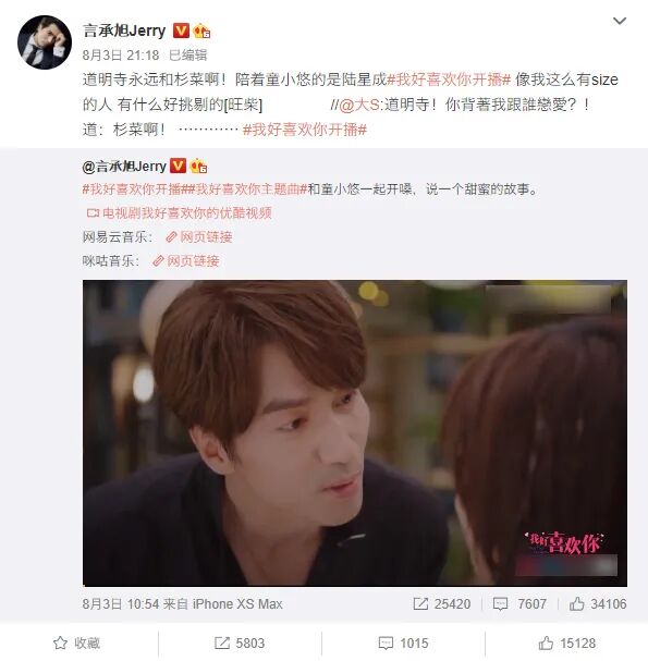 言承旭:要做的事情还很多,对现在的自己充满期待 谈心社 港台男星 2020-08-18 12:47:03 798 创作不易,用心坚持,欢迎请BaGua喝几杯爱心咖啡!打赏并支持本文 打赏并删除本文 “制作人想到找沈月跟我(来演),他们还蛮有创意的。”初代《流星花园》道明寺遇上新版杉菜,言承旭把此次与沈月的合作称为“奇妙的创造”。 “道歉有用的话要警察干嘛!”在近期更新的电视剧《我好喜欢你》中,言承旭再次说出了那句让观众熟悉的台词。虽然不如曾经活跃在荧幕前,但沉淀的这几年,不管是岁月为他定格的容貌,还是他对待演戏的专业态度,言承旭未曾改变。 本期超级星声,言承旭和我们聊了聊这些年的沉淀,聊了聊当下的自己。1“努力比幸运更重要”在接到邀约之初,言承旭自己也疑惑,难道片方不担心他已被观众遗忘了? “那时候我也问了(《我好喜欢你》的)制作人,我说你为什么会找我拍戏?毕竟这几年我真的没有太出现在荧幕前。”但制作人告诉言承旭:他就是拥有一份不变的“特质”。制作人的回答,也让言承旭发现,自己最大的改变,就是什么都没变。 “所以什么是‘人没有变’,就是不只是因为追求利益,追求名利(而去演戏)。”言承旭向我们分享了他和制作人的讨论,“比如说你为了钱去接一个角色,和你真的想要在这个角色中创造,会是两种完全不一样的氛围。我相信观众会感觉到(这两种)不太一样。” 在娱乐圈能不忘初衷,并不是一件容易的事。2001年电视剧《流星花园》播出,随着电视剧的火爆,言承旭和所在组合F4也风靡亚洲。但也说不清具体是从何时开始,言承旭逐渐淡出了公众视线。 虽然戏少了,但言承旭并没有停止在表演上的积累和沉淀。“喜欢表演这件事情,不代表我现在没有戏拍我就不是演员啊。”言承旭在摄像机看不到的地方默默努力,等待着给观众反馈的机会。 在言承旭看来,一直保持演员的专业状态,对自己来说尤为重要。疫情期间,他一贯地用学习充实生活,丰富自己的阅片量——“我还是会让自己每天接触演员这件事,让自己做很多的事情,保持在那个状态,我觉得等机会来的时候,你就可以把握。” “努力比幸运更重要。”新剧中的这句台词让言承旭感触颇深。在言承旭眼中,当年的“道明寺”之所以能得到大家的青睐,并不只是单纯的幸运而已。“很多考验在后面,那你有没有实力呢?我觉得现在大家越来越讲究的是你有没有(好的)表演,而不是只是你好不好看。” “我相信到最后别人会看得到你有没有很努力,但我绝对不是只用嘴巴讲。” 2初代道明寺碰上新版杉菜言承旭在接触到陆星成这个角色时,看到了自己身上的一些影子。 作为时尚总编的陆星成,在挑剔、严格的外表下却有着热诚温暖的内心,言承旭也同样用“外冷内热”来形容自己。 “我好朋友们会觉得,虽然我很在乎你但是我可能不好(直接说)去帮忙,都是私底下偷偷地帮。但是当面又不是那种很热络(的样子),就是反差很大。”虽然言承旭不善于表达,但这种反差让好友甚至调侃,和言承旭交朋友“好像是在谈恋爱”。 和霸道总裁谈恋爱,是不少偶像剧中的浪漫桥段。霸总的人设本身就是不少观众的理想型,更不用说言承旭身上的观众缘了。 《我好喜欢你》新剧开播,大S转发微博“质问”言承旭:“道明寺,你背着我和谁谈恋爱?道:杉菜啊!”网友纷纷评论“瞬间把我拉回了少女时代”。言承旭机智答道:“道明寺永远和杉菜啊!陪着童小悠的是陆星成。”言承旭与大S隔空互动/言承旭微博此次和言承旭搭戏的沈月,在新版《流星花园》中恰好饰演杉菜一角。“初代道明寺”与“新版杉菜”在《我好喜欢你》中的破次元合作,言承旭自己也感叹“很有创意”。 “演员最快乐的事就是遇到(好的)对手,两个人在表演上有一些化学效应,有火花的时候,你会觉得好像每天在创造,常常会有一些很奇妙的表演。”当被问及和沈月合作的感受,言承旭满是夸赞,“其实我在她身上学到的比较多,我好像没有什么可以教她的,她自然到我发自内心地觉得超幸运。”3曾经害怕失败,而今不愿留下遗憾言承旭觉得曾经的自己太害怕失败了。如今,这些年积累的经历让他感慨:人生最应该害怕的,反而是留下遗憾。 随着年岁的增长,言承旭不想在回顾过往时,发现还有很多可以尝试的事情却没有去做。“做得好不好并不重要,因为这就是人生,为什么不努力去多多尝试?” 除了演员以外,近两年言承旭还接触了许多不一样的事物。他参加的几档内地综艺陆续播出,内向低调的言承旭在节目中还是拥有抓人眼球的魅力,观众评价“找回了当年心动的感觉”。 “每个人来到这世上,都一定有自己的某个使命。但我觉得使命并不是说你一定要多伟大,或者一定要有名。而是说你回头看时,会觉得人生其实可以这么丰富。”如今,步入不惑之年的他,更希望“四十岁、五十岁、六十岁的言承旭,再回头看的时候会觉得活在这个世界上,没有白来”。 聊到未来,言承旭向我们分享了他的计划。“接下来可能也会尝试不一样的角色,那个角色跟以前的我不太一样,包括我还要为了这个角色去做一些训练。要做的事情还很多,所以我现在对自己很期待。”文|姚礼颖 刘京视频|孙世麒 陈希统筹|马晨本文授权转载自网易上流(ID:heyupflow),转载请联系原公号。《谈心社》招聘内容运营、视频策划等9个岗位正职工作地