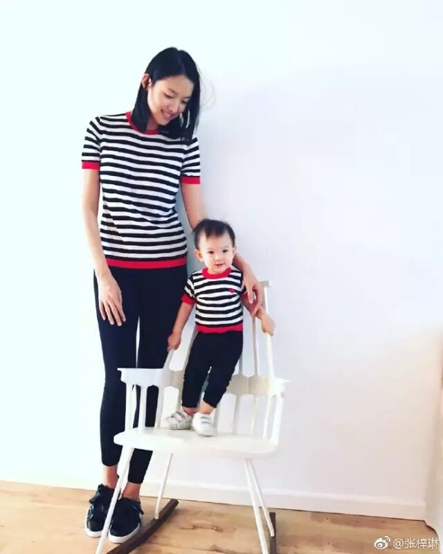 不过看张梓琳的日常会发现,她真的蛮喜欢条纹装的。不管是她自己还是孩子,都有好几件。