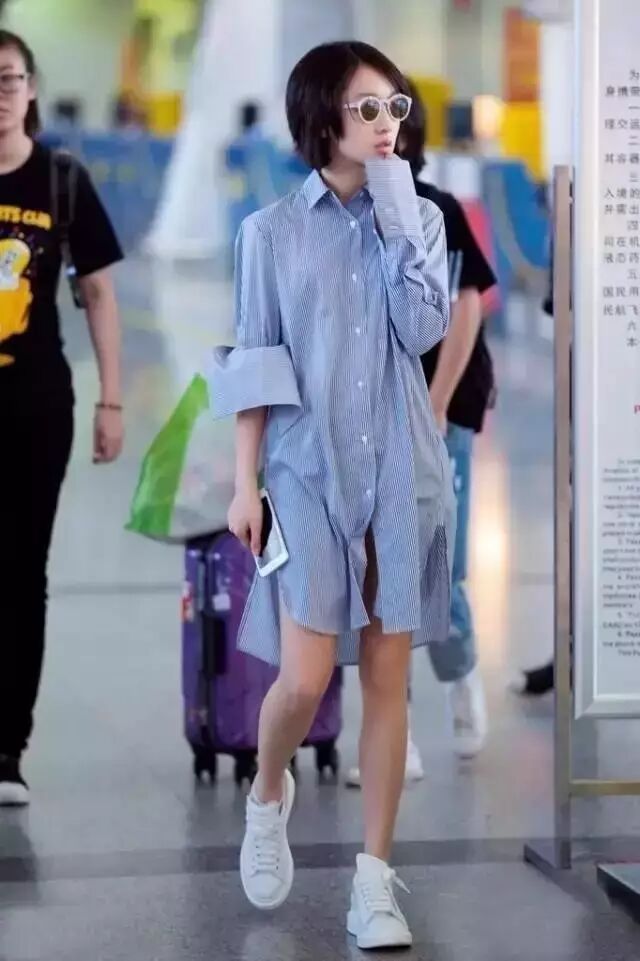 不过这条纹装,真的好显年轻啊!F姐告诉你,张梓琳比Angelababy大5岁,所以,大家懂了吧!