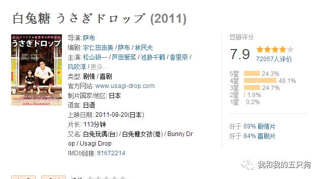 本片改编自日本漫画家宇仁田由美的同名漫画作品。豆瓣影评7.9,好于84%的喜剧片。