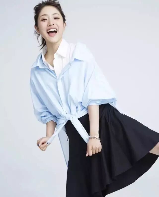 细心的你有没有发现这身造型的亮点?没错,就是两件衬衫搭在一起的创意!什么?还有这种操作?没错,里面选择白色紧身衬衫,外面搭配宽松收腰衬衫,再腰部打上一个大大的蝴蝶结,拉长腰部线条。下面穿一件泡泡裙,搭配十元招牌笑容,这个静态图秒变GIF格式有木有?