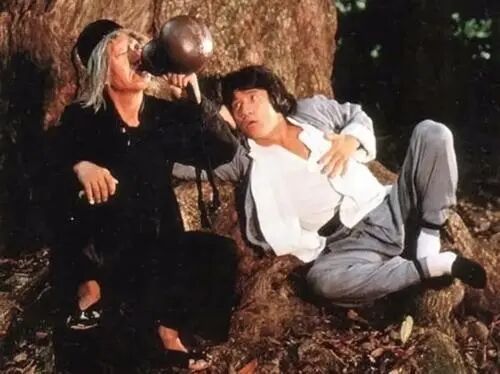 洪金宝就开始骂成龙,成龙一听,信心来了,就把手一放,跳了下去。