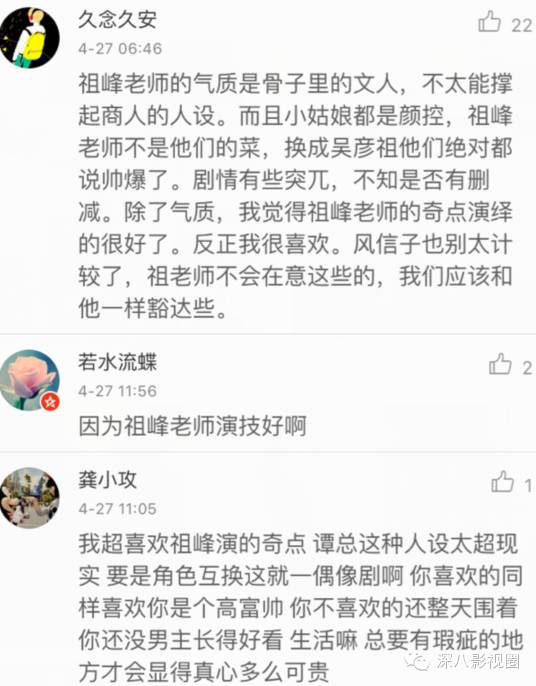 把一个男人的执着刻画得淋漓尽致,借此拿下华鼎最佳男配角,圈下第一批粉(深八君妈妈就此成为祖峰的忠实粉丝)
