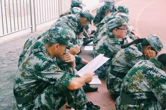 另一边少数因为身体不舒服的原因在一旁休息,在休息之余,他们在识记内务条例,为同学们在内务上奉献了自己的一份力量。