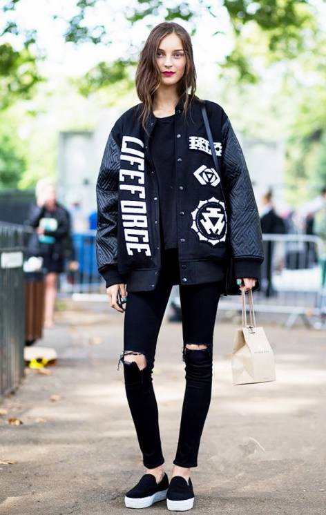选择棒球夹克搭配破洞牛仔裤,每一件单品,我都好像要。