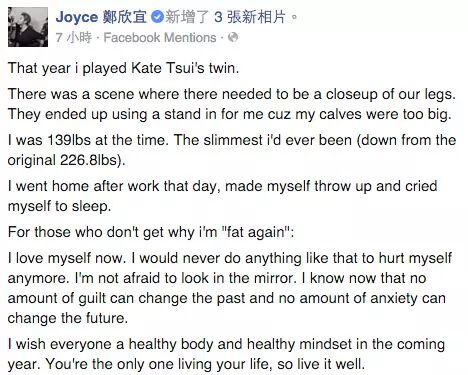 其实欣宜发表“减肥感悟”长文已经不是第一次,去年六月,她已经发表过决心不再减肥的心声,这篇文章,至今有超过11万人点赞。