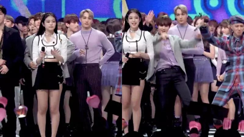 2018年12月15日播出的《Show! 音乐中心》自KJ的恋情曝光后就多次被翻出来,先是有网民指出原本站得很远的JENNIE为了靠近男友KAI而小心翼翼挪到他身边。 这次网民们又「猜测」,其实KAI的队友和JENNIE的同公司前辈早就知道了两人的恋情,为了替他们「掩饰」恋情在舞台上也是煞费苦心。
