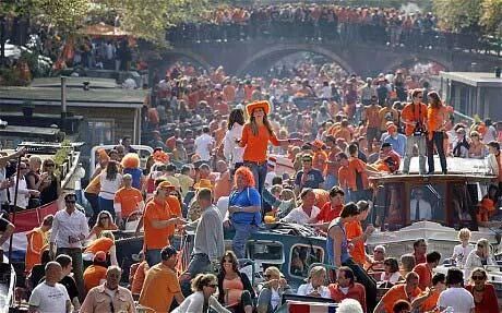 所有人集体放假的荷兰,代表皇室的橙色旗帜会将大街小巷变成一片橙色海洋。