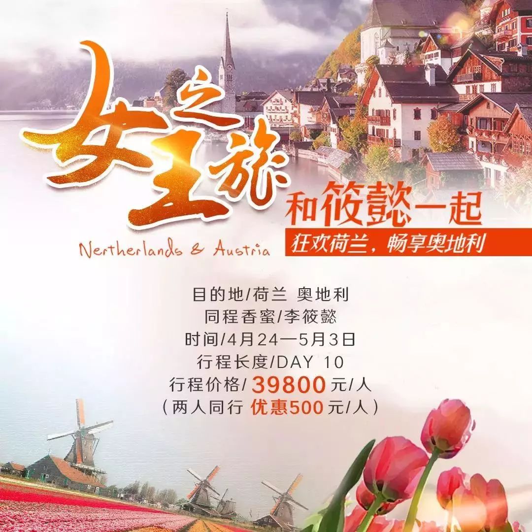 4月24日,筱懿就将与你一起开启这趟“女王之旅”,一起在荷兰尽情狂欢,在奥地利梦幻畅游。