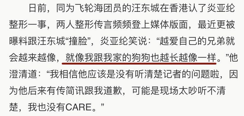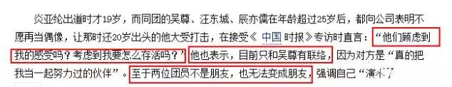 开扒炎亚纶汪东城的“爱恨情仇” 吃瓜有料 港台男星 2020-03-13 12:26:14 2021 创作不易,用心坚持,欢迎请BaGua喝几杯爱心咖啡!打赏并支持本文 打赏并删除本文 最近,大家又把目光聚焦到曾经红极一时的飞轮海上。这个“宝藏男团”的瓜可真是越嗑越精彩,尤其是炎亚纶和汪东城的故事,更是勾起吃瓜群众们的好奇心。炎亚纶参加节目时自曝当年看到东方神起,觉得自己所在的团好烂哦。结果就有网友发现,汪东城深夜点赞了东方神起演唱现场版的相关微博。炎亚纶还说跟其他飞轮海的成员也没联络了,感觉不是玩在一起的人。甚至在当年竞争最激烈的时候,达到讨厌的程度。至于生气讨厌的原因,很大程度上是因为对待粉丝的价值观不同。当时,飞轮海的粉丝也分为好几个派系,互相之间暗流涌动,争得很厉害。炎亚纶说他面对粉丝吵架时,都会充当“和事佬”的角色。“好了好了,不要不要,拜托”但团里有些人就不会这样劝阻,小S追问是谁时,炎亚纶就有些不太自然地笑笑,说是“那个人”。这个人到底是谁,其实大家也都心知肚明,就是常常跟炎亚纶一起被写出来的,上面提到的点赞东方神起的汪东城。说起来,飞轮海组合是2005年12月正式出道。早在出道前,当年的5月份,汪东城就在社交平台上小小地“抱怨”过。“搞不懂我们班那个小孩子,没事爱和我说些有的没的”“是在考验我的耐性吗,还是一个耍无聊兼幼稚或是其实他是喜好男性想引起我的注意”当然,吐槽归吐槽,最终汪东城还是说服自己不瞎猜。“小孩子,算了...”后来大家都猜测,这时他口中的小孩子,就是后来的队友炎亚纶。因为飞轮海出道时,炎亚纶只有19岁,而同队的吴尊、汪东城、辰亦儒,已经是25、26岁了。后来他们还因为年龄差太大,其他几位想转变路线,年纪偏小的炎亚纶对着媒体抱怨说不考虑他的感受。不过这都是后话了,组合成立之初,汪东城很照顾炎亚纶,炎亚纶也很依赖汪东城。两人有不少“发糖”的瞬间。各种活动时,炎亚纶的眼神几乎一直锁定着汪东城。也有这种牵手手的照片。当年飞轮海参加节目,玩游戏分组,基本都是吴尊辰亦儒一组,汪东城炎亚纶一组。他们还会被cue一起重现某些影视剧片段,靠的超近。记者在前面采访时,两人在后面打打闹闹,一个把另一个扛起来。汪东城手机里有炎亚纶睡在自己腿上的照片。就,看起来关系挺亲密的。曾经有次炎亚纶被问到想和飞轮海中的哪位演断背,炎亚纶没有选择和他一起上节目的辰亦儒,而是选了汪东城。那时候,炎亚纶很喜欢挨着汪东城。采访时,把手放在汪东城腿上。会帮他压住头发,防止被吹乱。节目里,主动找汪东城示范床咚戏。某年演唱会,炎亚纶唱到“就算与世界为敌我超喜欢你”时,转过来对着汪东城。社交平台上的日常,除了宣传活动就剩下汪东城。发自拍,要特别说明,“在东的房间里”偷拍他化妆的照片,配文“东东”。晒东的调酒。东比耶,还要加上两个感叹号。妥妥的迷弟啊。明明是四个人的组合,吴尊和辰亦儒就仿佛不配有姓名。不仅如此,有段时间,汪东城和唐禹哲互动比较频繁。每次两人你来我往后,炎亚纶就忍不住酸溜溜吐槽一下。这暗戳戳的小心思,连粉丝都看不下去了,在评论区喊话,“你到底要吃醋到什么时候啊噗”光吃醋还不够,炎亚纶还要时不时刷一下存在感。汪东城转发一个值得深爱的星座排名,为处女座叫屈。炎亚纶就转发唱反调,说这是超正确的排行。像不像幼稚的小男生想引起喜欢的人注意,故意作对。你品,你细品...但前面我们提到过,汪东城曾经发文说过猜不透同班小孩子的心思,很困扰。纵然cp粉们嗑的爽,但时间长了,当事人可能并非乐在其中。飞轮海组合开微博时,有人发现汪东城关注了另外两位队友,却始终没有关注炎亚纶。而炎亚纶反反复复,一次次取关又重新关注汪东城,仿佛一个讨糖吃的孩子。还被人发现,他搜索汪东城信息时,不小心当成话题发了出来,后来删掉了。当年还有私生饭曝出,飞轮海去日本时,汪东城和炎亚纶住一个房间,但汪东城进去后,把门锁了,炎亚纶晚归时,在门口又哭又喊都不开。即便如此,他也不肯去找前台拿钥匙开门,而是一个人在门口蹲了一夜。这段后来在辰亦儒中的采访有提到,他解释汪东城当时感冒,喝了药睡着了。于是,慢慢的,矛盾就产生了,陆陆续续有传言说汪东城和炎亚纶不和。有报道称炎亚纶腿伤期间,有记者在时,是汪东城推着炎亚纶,一旦离开媒体的镜头,推轮椅的任务就回到助理手中。起初,吴尊还出来解释,说没有不和。但汪东城和炎亚纶关系已经闹的很僵了,明眼人都看得出来。打掉话筒。抢镜头。粉丝也发现他们之间的不对劲,爆料说某场活动中,主持人讲了个笑话,他们中间还隔着吴尊呢,第一反应都是弯腰去看对方哈哈大笑,笑到一半突然坐回去,汪东城还翻了个白眼。呐,就是下面这一幕。于是后来吴尊又承认飞轮海相处有摩擦,当不成朋友。2011年,吴尊决定往影视圈发展宣布单飞后,汪东城和炎亚纶的矛盾愈演愈烈。有报道称,两人已经到了“有你没我”的地步,互相以低价抢广告代言,参演的剧播出时,为抢收视率频繁亮相宣传活动。汪东城公开承认炎亚纶整容。炎亚纶回应说不关注汪东城的戏。还跟嗑cp的粉丝说,实在不想告诉你,他多会演,你们有多白痴。亲手拆cp,东纶这个粉丝团麻烦自行解散。2014年时,炎亚纶接受采访