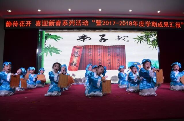 2017年12月,长沈路学校幼儿园“静待花开 喜迎新年”系列活动如火如荼的进行着,继《巧手装扮幼儿园》、《长沈创意时装秀》、《过中国节品中国味》活动后,在2018新年的钟声即将敲响的日子里,为了使孩子们更好地感受中国传统文化,给他们提供一个展示自我的舞台,同时使家长们更深入了解幼儿在园活动,长沈路学校幼儿园一年一度的学期成果汇报于2017年12月29日拉开了帷幕。